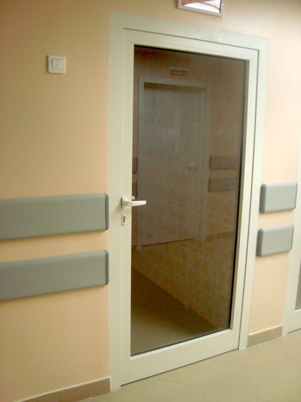 От качества заполнителя зависит, насколько эффективно преграда будет препятствовать распространению высоких температур. Материал должен быть негорючим и стойким к температурным воздействиям. В комплектацию противопожарной алюминиевой двери также входят уплотнители, ручки, замки и иные элементы фурнитуры. Дополнительные фурнитурные детали: доводчики, отбойные пластины, пороги разных типов.